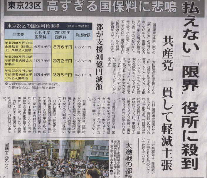高すぎる国保税に悲鳴「しんぶん赤旗」