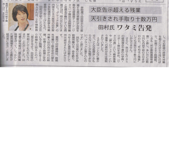ワタミ告発「しんぶん赤旗」