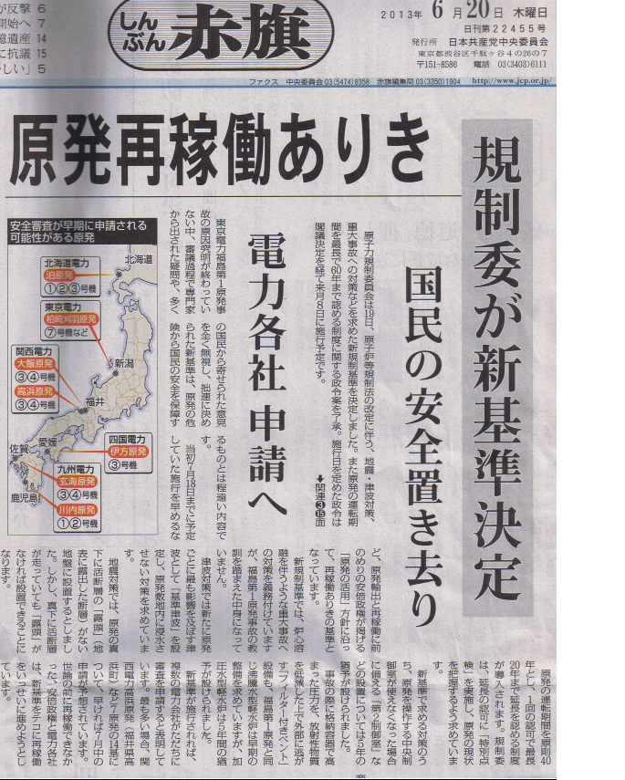 原発再稼動ありき「しんぶん赤旗」