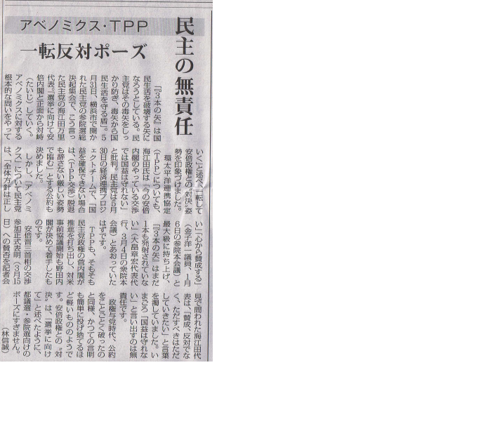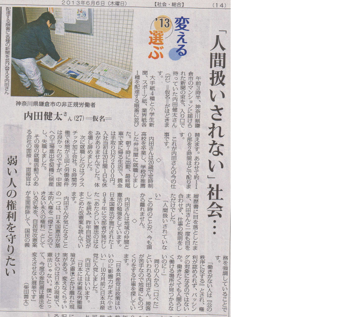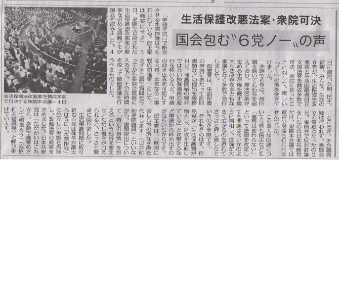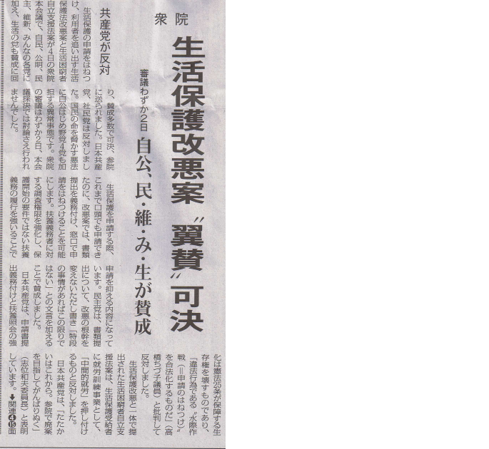 生活保護改悪案翼賛可決「しんぶん赤旗」