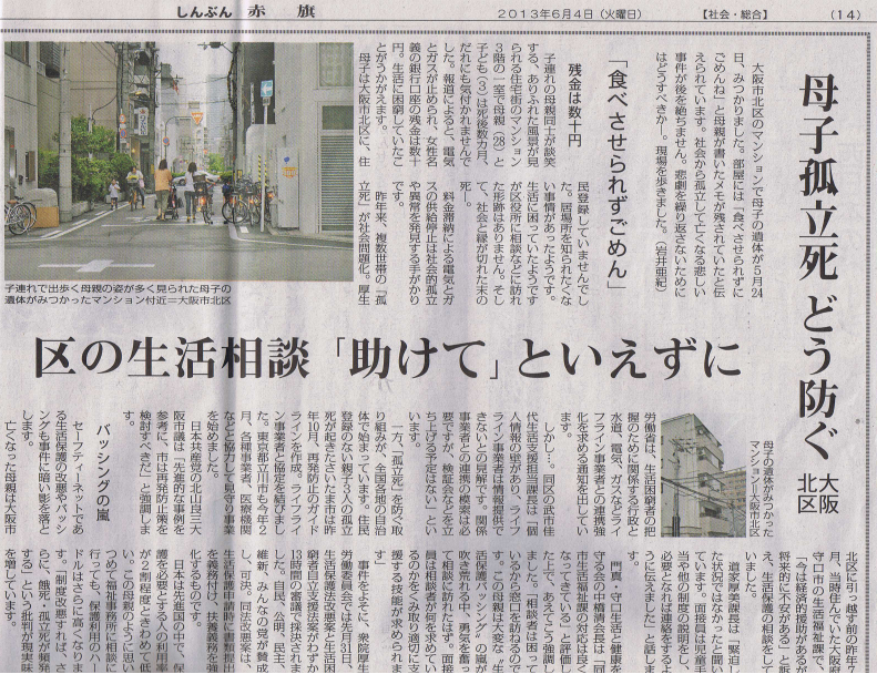 母子孤立死どう防ぐ(大阪北区)「しんぶん赤旗」