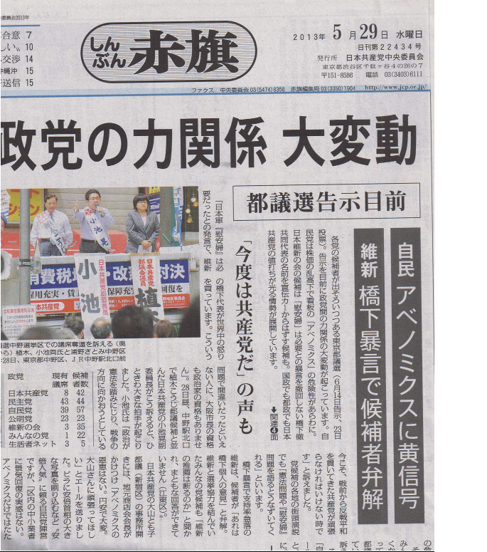 政党の力関係大変動「しんぶん赤旗」