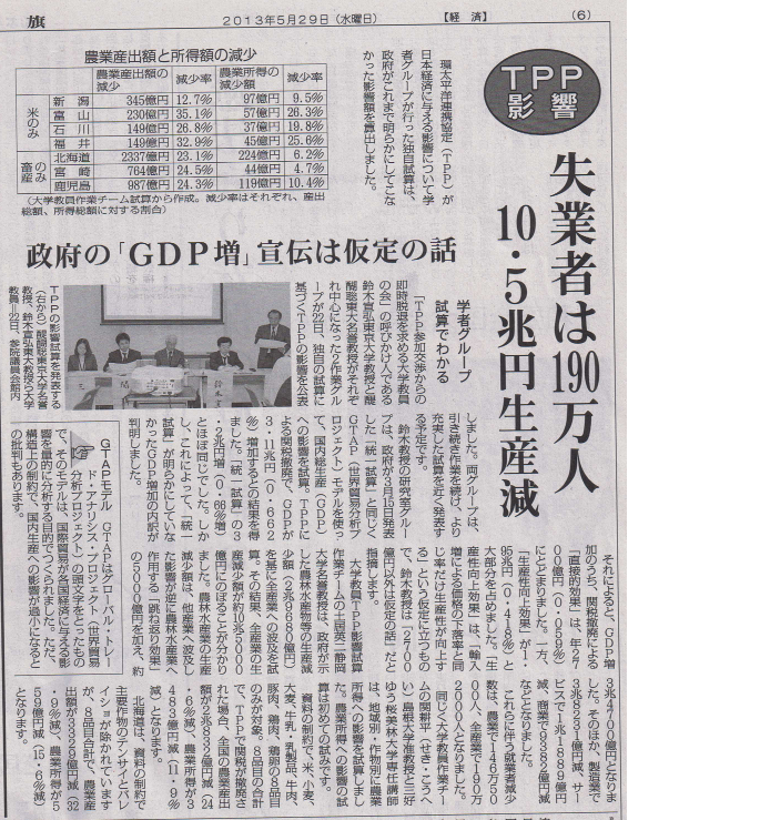 TPP影響 失業者は190万人