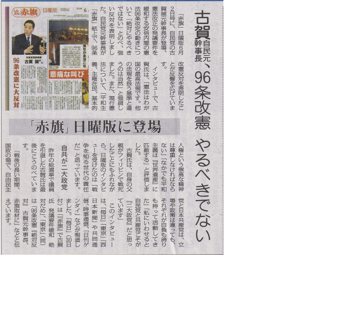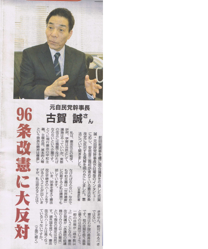 古賀自民元幹事長96条改憲やるべきでない「しんぶん赤旗」
