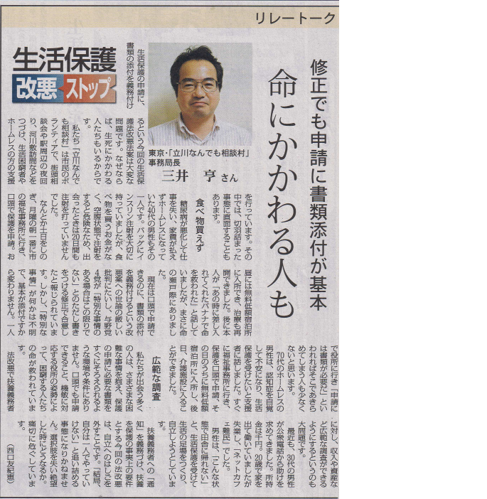 生活保護「水際作戦」合法化許されない!「しんぶん赤旗」