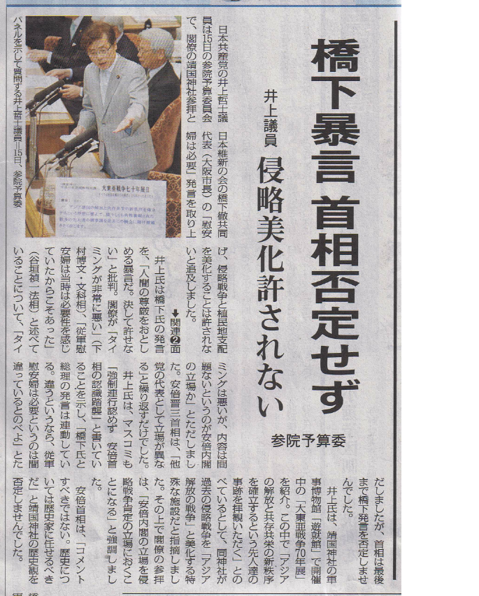共産党 井上議員 侵略美化許されない