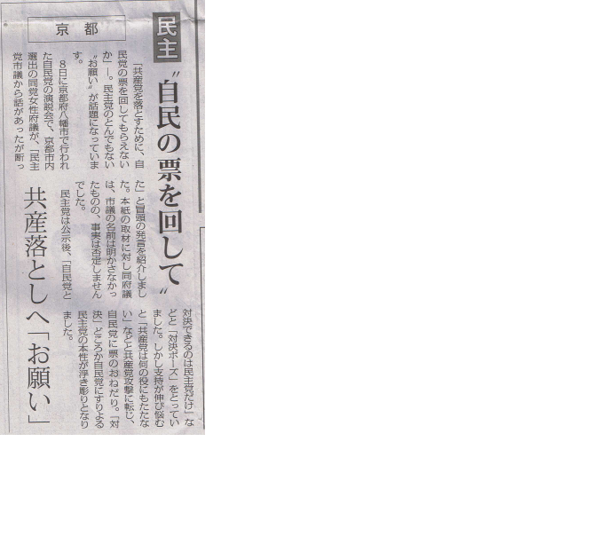 民主「自民の票を回して」共産党落しへ「お願い」