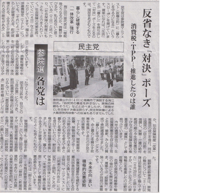 民主党・反省なき「対決」ポーズ「しんぶん赤旗」