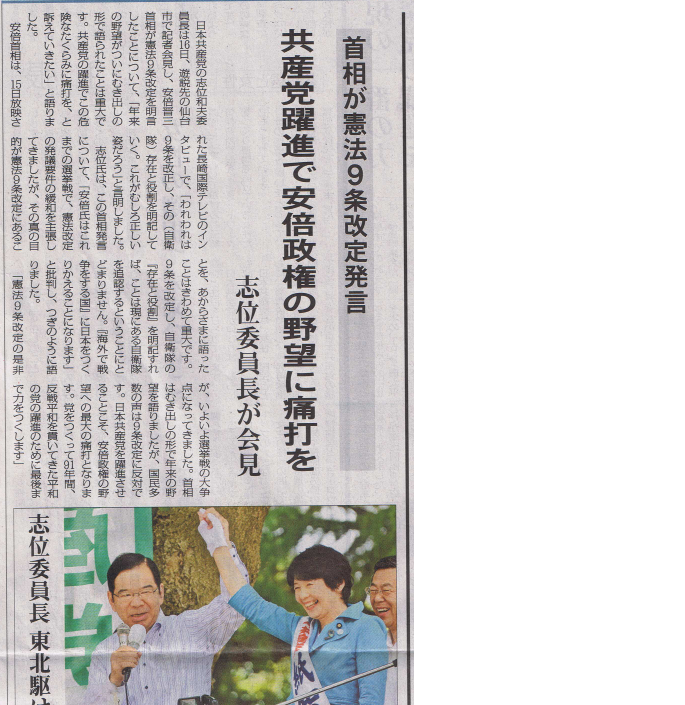 共産党躍進で安部政権の野望に痛打を!