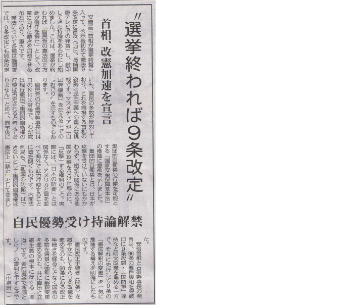 安部首相が憲法9条改定発言「しんぶん赤旗」