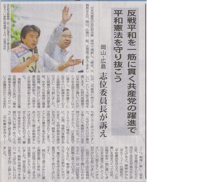 反戦平和を一筋に貫く共産党の躍進で平和憲法を守り抜こう!