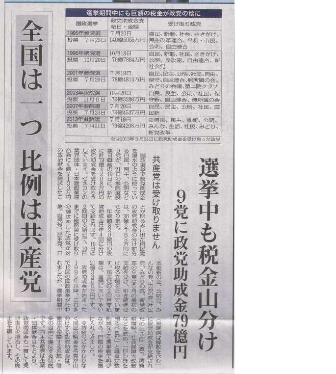 選挙中も税金山分け「しんぶん赤旗」