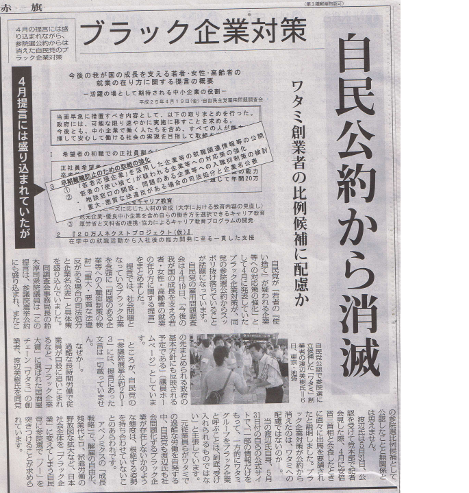 「ブラック企業対策」自民公約から消滅 しんぶん赤旗