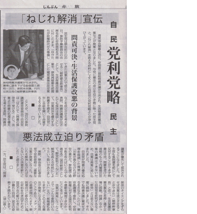 「安倍暴走内閣」草の根で包囲 「しんぶん赤旗」