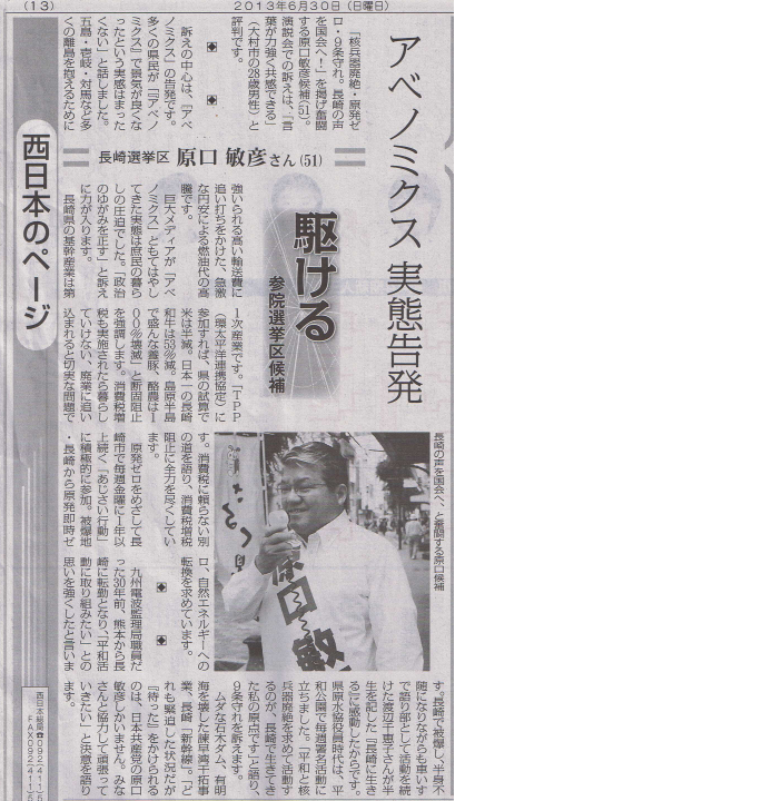 参議院比例は「共産党」長崎選挙区は「原口敏彦」さんにご支持を!